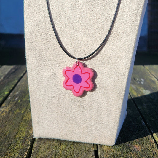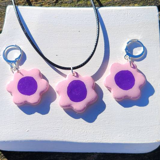 pink and purple flower clay pendant necklace & sticker sheet [KOSH & YOG x AJAIBGHAR]