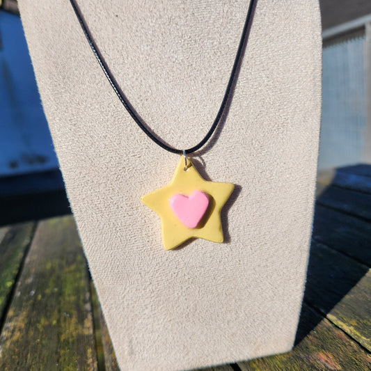 3D pink heart star clay pendant necklace & sticker sheet [KOSH & YOG x AJAIBGHAR]