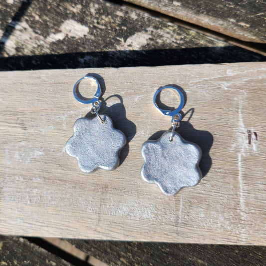 (multiple colours) flower clay charm silver huggie hoops drop earrings