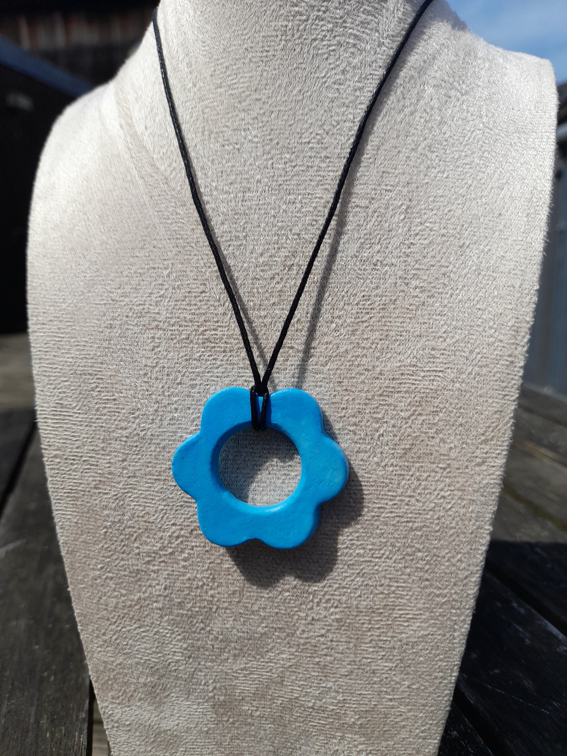 blue flower matte pendant cord necklace