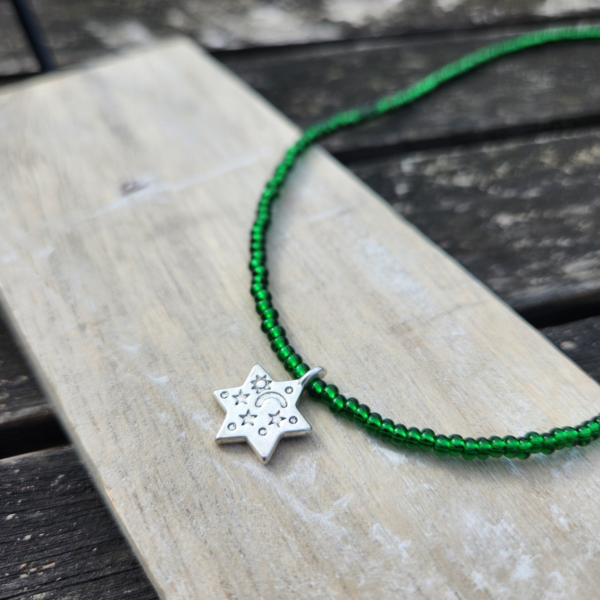 (multiple colours) silver star of david glass bead necklace